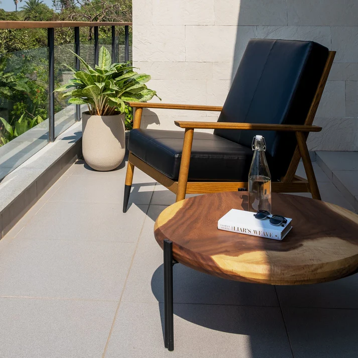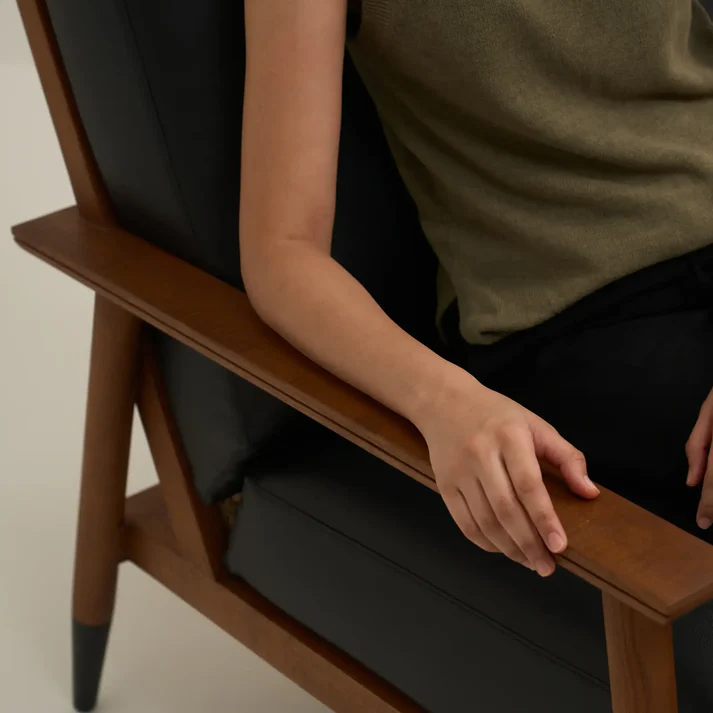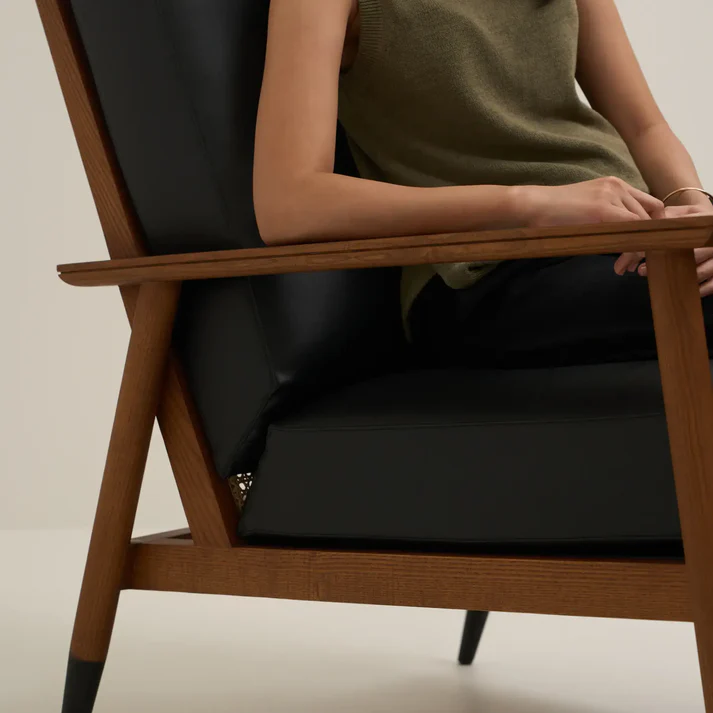 The Bawa Lounger, a tribute to architect Geoffrey Bawa, merges tropical allure with meticulous design, featuring cane accents, removable cushions, and custom turned legs. Fully upholstery and crafted from solid oak with a natural satin finish, this chair embodies durability and warmth, redefining your seating experience.