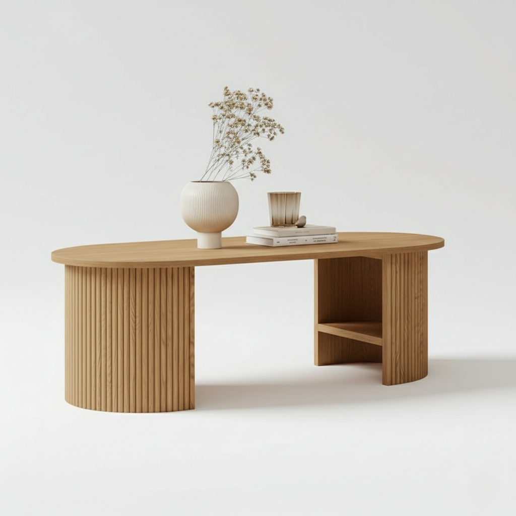 Minimal in form this Curved Slat Coffee Table is enhanced by a dual toned intricate woven cane detail. A wooden tray detailed top creates a sense of enveloping the woven cane feature within it’s island. Solid wood legs further elevate the aesthetics of this design.