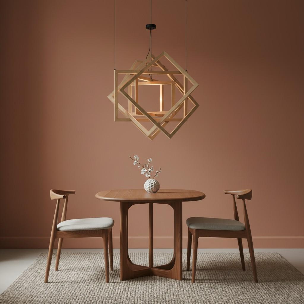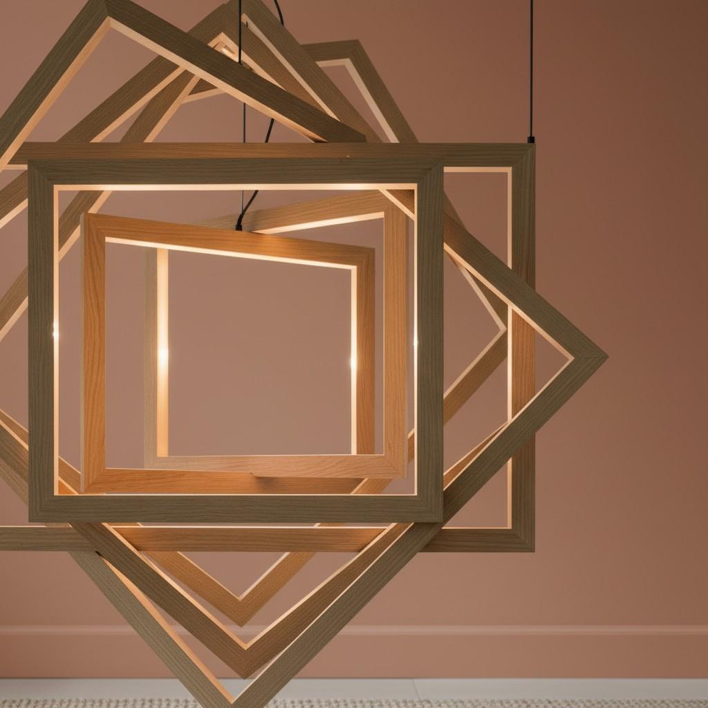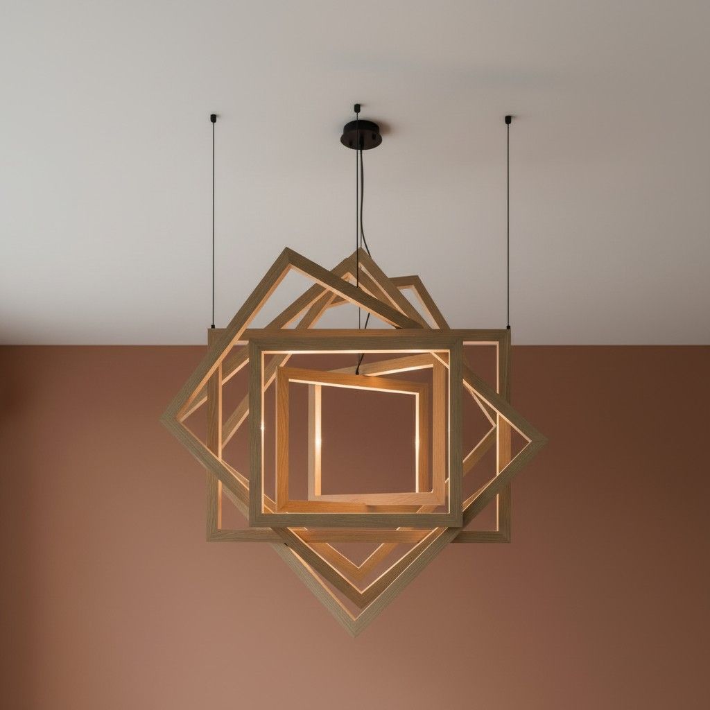 Bring a bold yet warm statement to your space with this geometric wooden pendant light. Designed with layered square frames, it creates a sculptural look that feels both artistic and balanced. The natural wood finish adds warmth, while the integrated LED lighting softly highlights each frame, producing a cozy ambient glow.