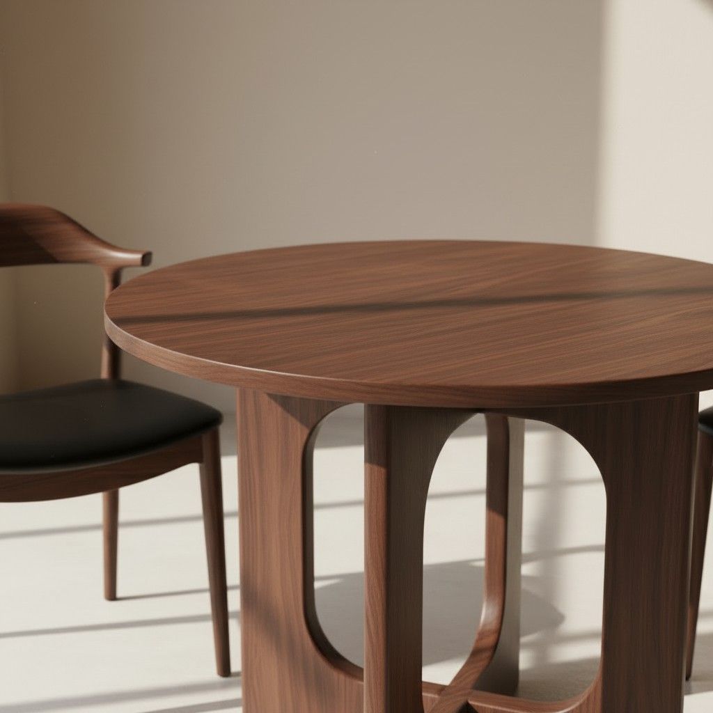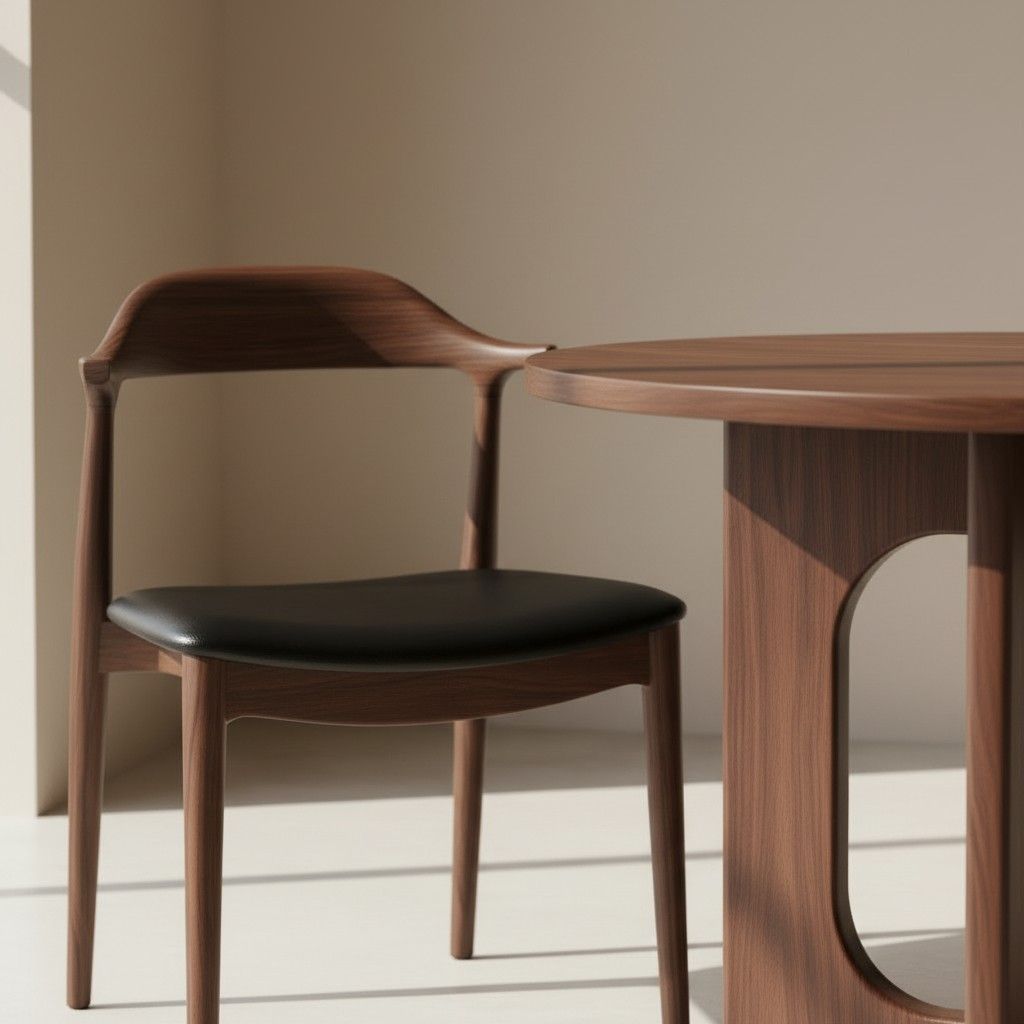 Designed for homes that appreciate quiet luxury, this dining set stands out with its smooth curves and clean lines. The round tabletop rests on a bold sculptural base, creating a subtle focal point without overwhelming the space. Paired with ergonomically designed wooden chairs featuring soft seating, it offers both comfort and visual harmony.