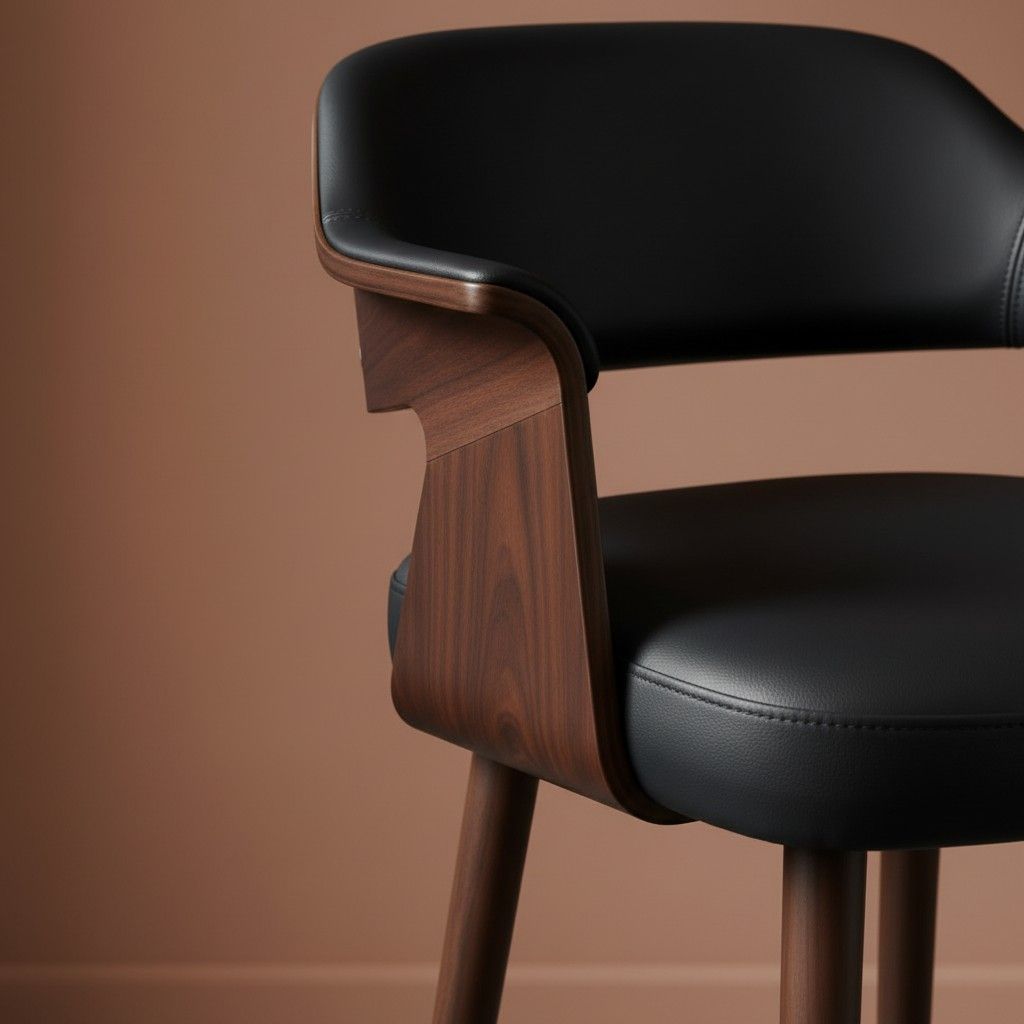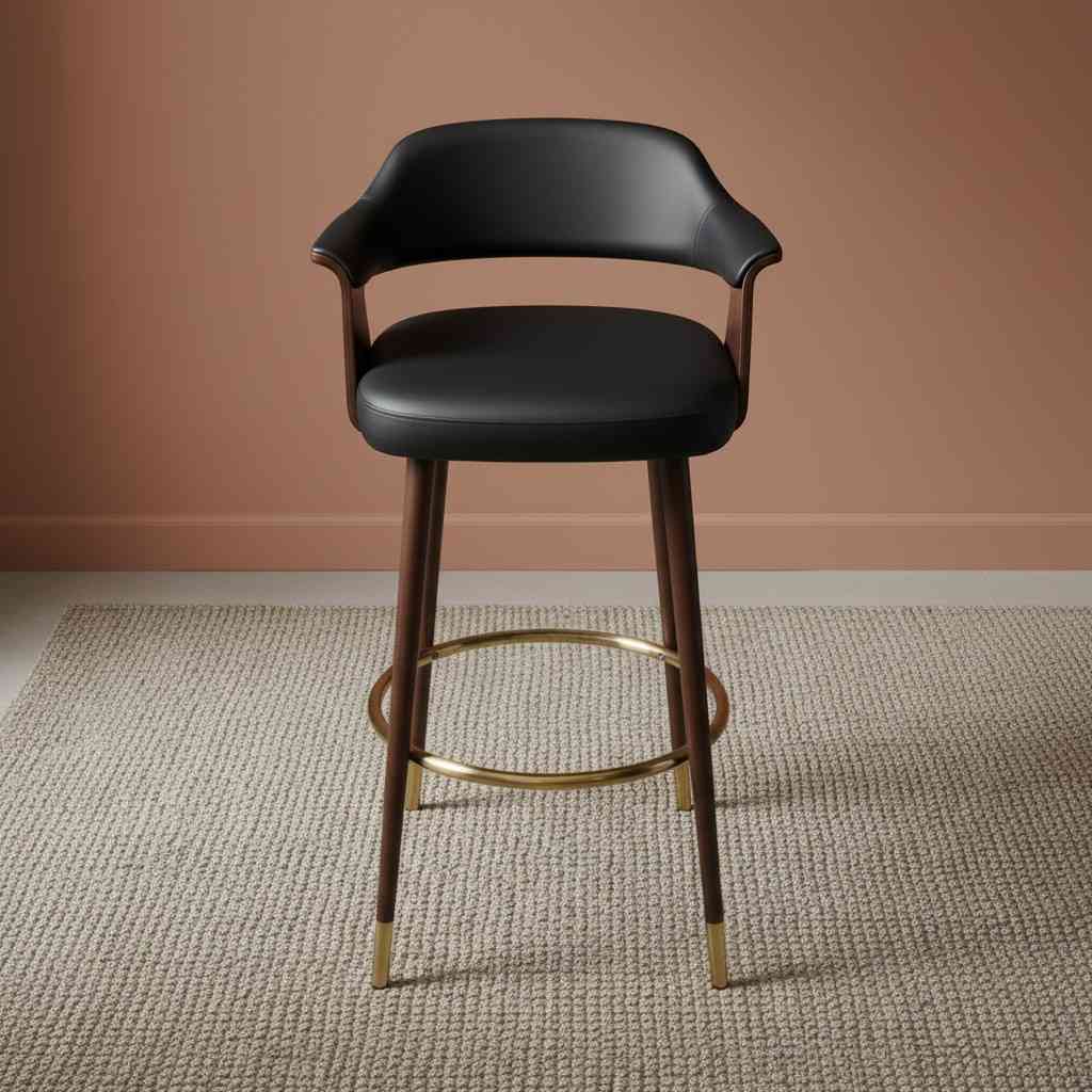 Designed to elevate both comfort and style, this modern wooden bar stool blends rich materials with a clean, sculpted form. The solid wood frame in a warm walnut finish brings natural depth, while the smooth upholstered black seat offers a soft and supportive sitting experience.