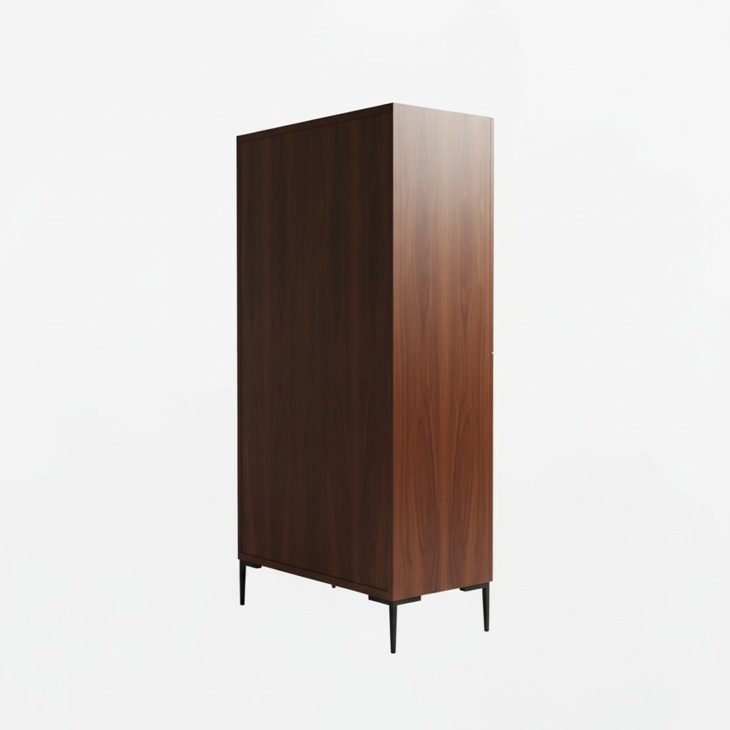 The warm natural wood finish enhances the grain, giving it a refined and inviting appearance. Its minimalist structure, paired with sleek handles and raised legs, creates a light and contemporary feel, making it ideal for modern homes.