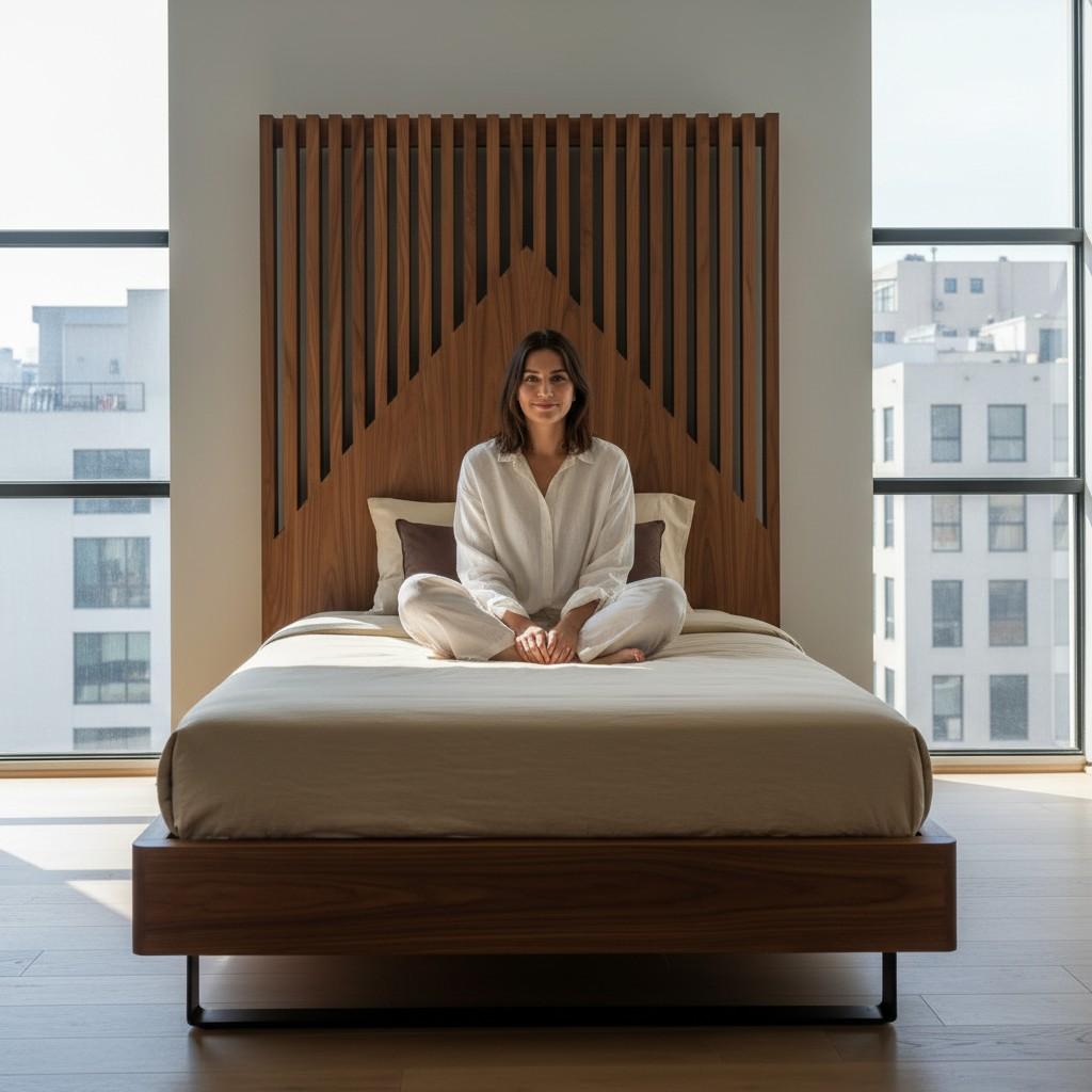 Solid Teak Single Platform Bed – Low Profile Minimalist Wood Bed