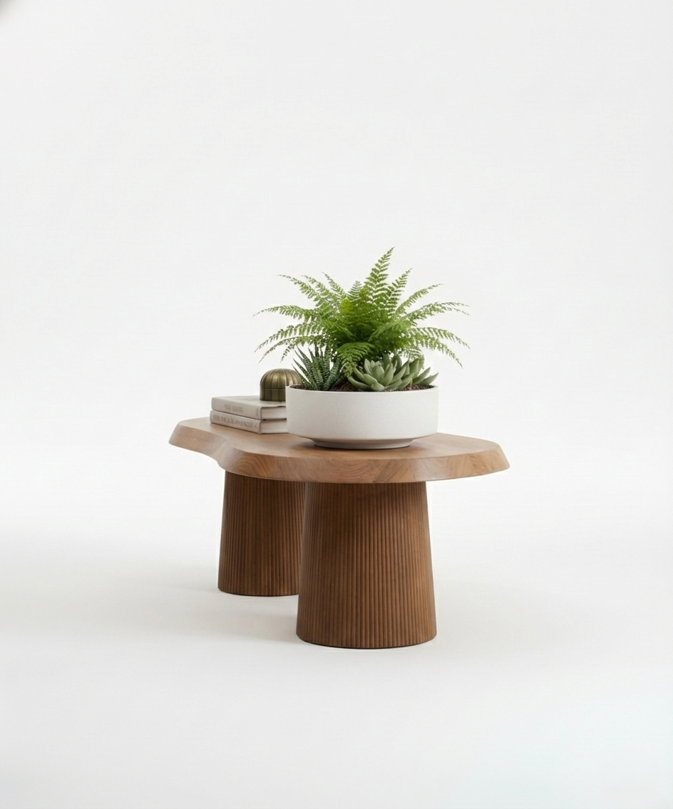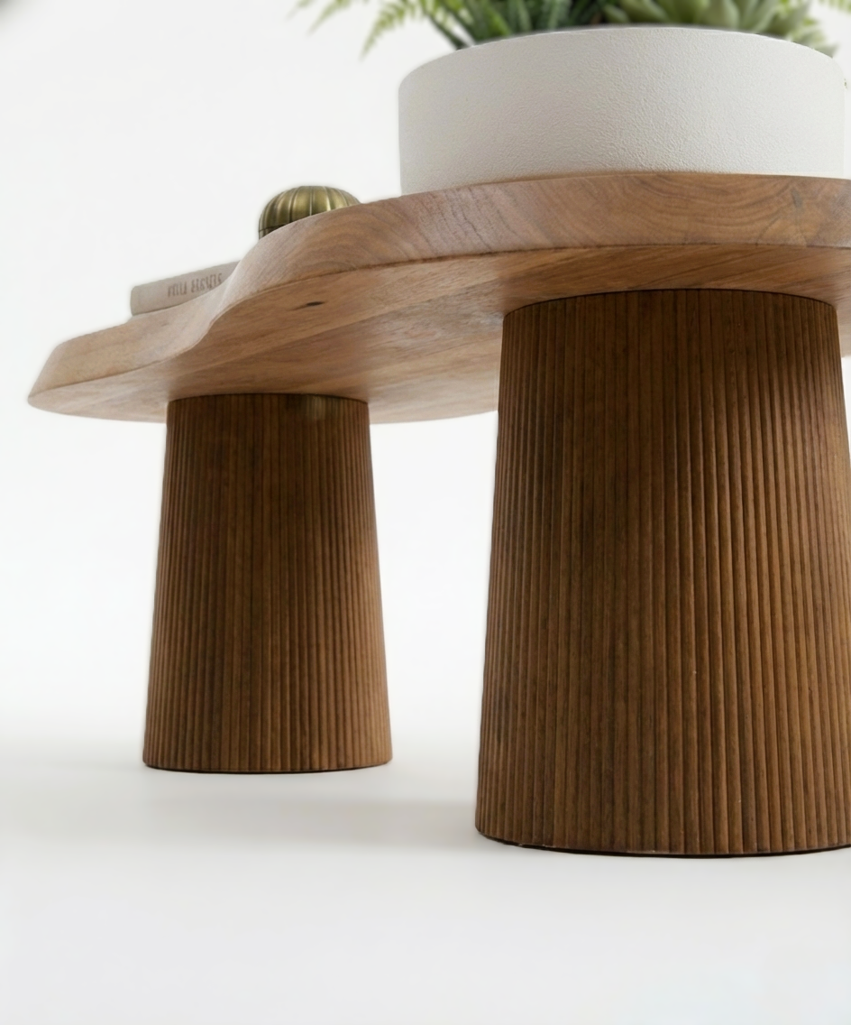 Minimal in form this The lobe is enhanced by a dual toned intricate woven cane detail. A wooden tray detailed top creates a sense of enveloping the woven cane feature within it’s island. Solid wood legs further elevate the aesthetics of this design.